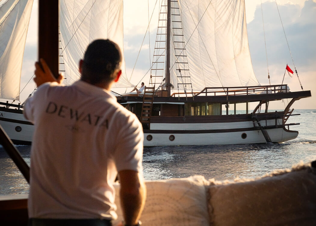 A stunning 33-meter Phinisi, Dewata is a private luxury charter yacht thoughtfully designed to cater to guests of all ages. Balancing privacy and togetherness, it features two ocean-view master cabins, a luxurious lower-deck cabin, a private terrace, and an expansive sundeck perfect for relaxation.
