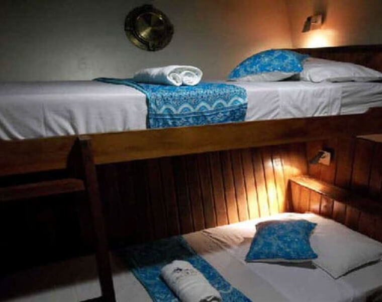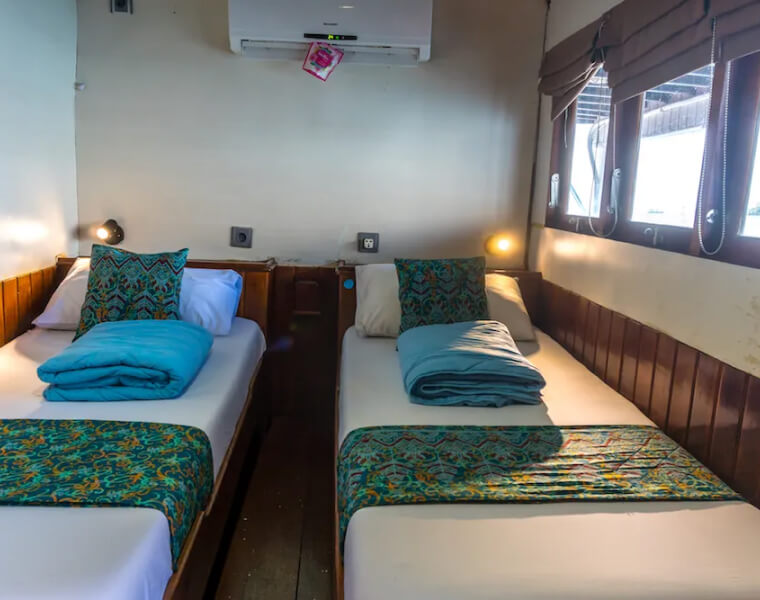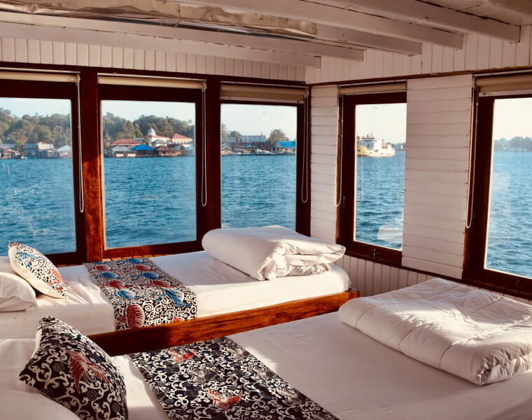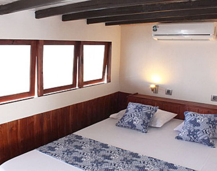 Positioned on the upper deck, this cabin offers a double bed, and glass windows.