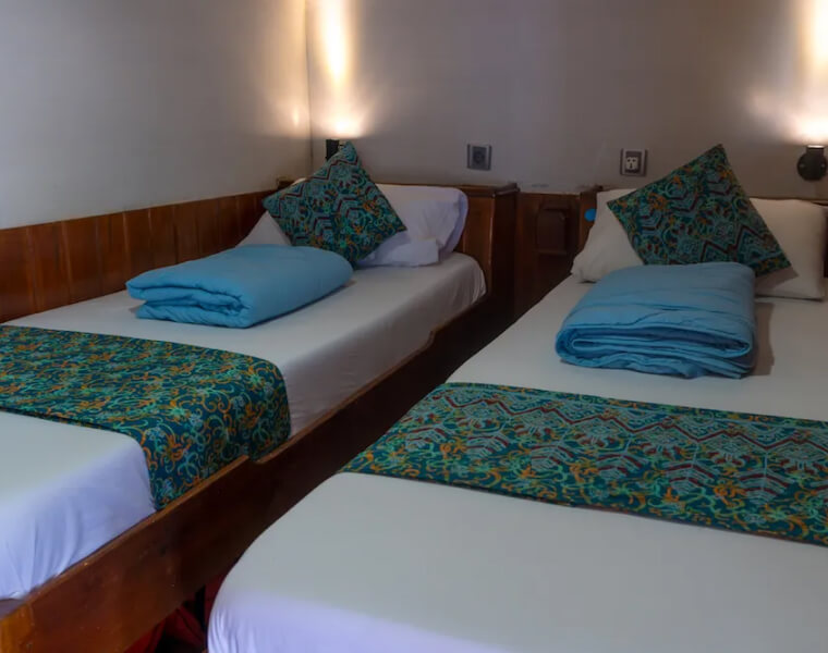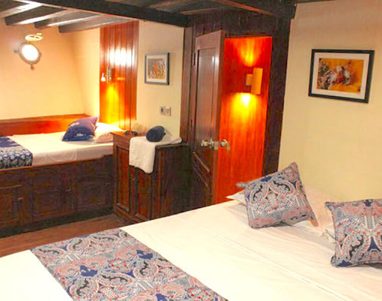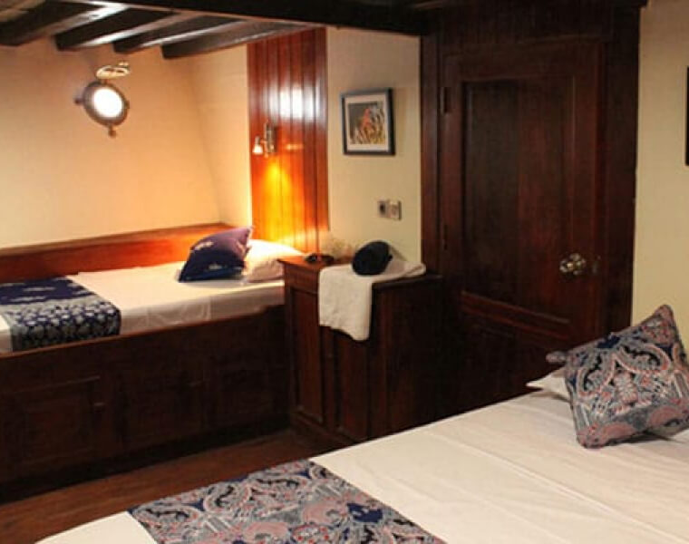 Located on the lower deck, this spacious cabin includes a double bed and a single bed, and an ensuite bathroom.