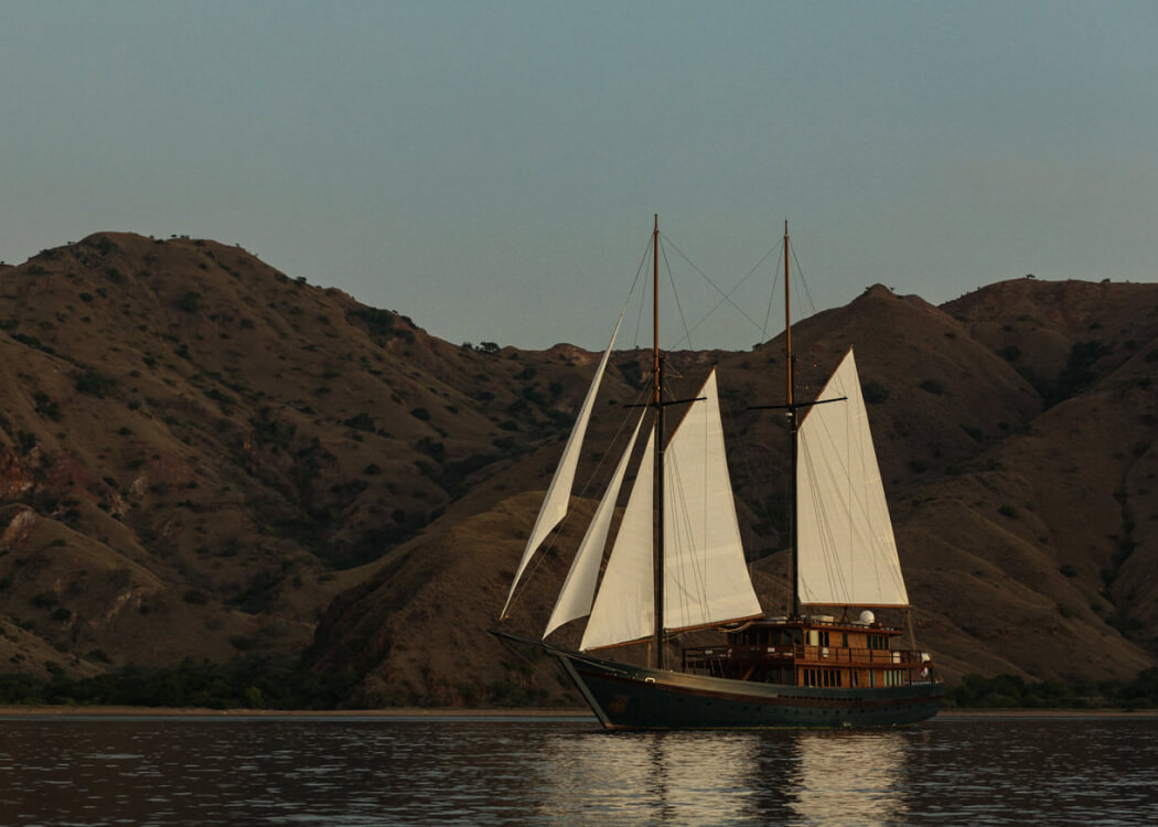 Yes, unlike other phinisis cruising the Indonesian archipelago, Vela has fully functional sails and can sail up to 6 knots without use of the engine. With that said, for the comfort of our guests and to offer more time for activities while at anchor, we mostly use Vela’s 890hp engine while at sea to limit the length of crossings.